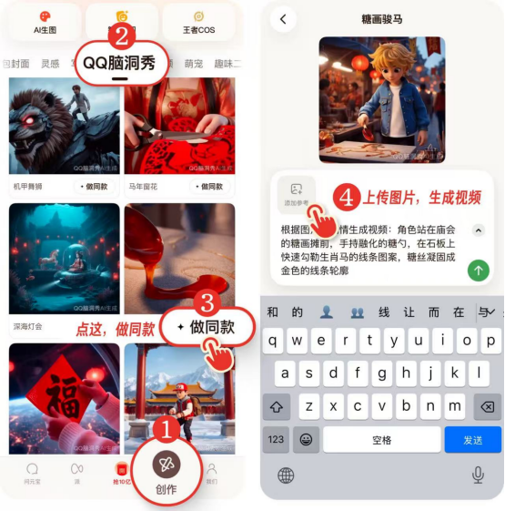 目前,用户既可通过元宝体验便捷的个人AI创意生成,更可在手机QQ中探索充满趣味的好友共创AI社交玩法。手机QQ更新至最新版本,通过动态或者空间发说说入口即可进入功能体验。